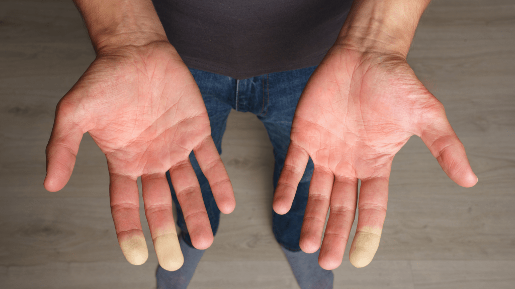 9. Fenomena Raynaud. Jari-jari tangan dan kaki menjadi pucat hingga kebiruan apabila suhu ruangan/cuaca dingin atau stress.